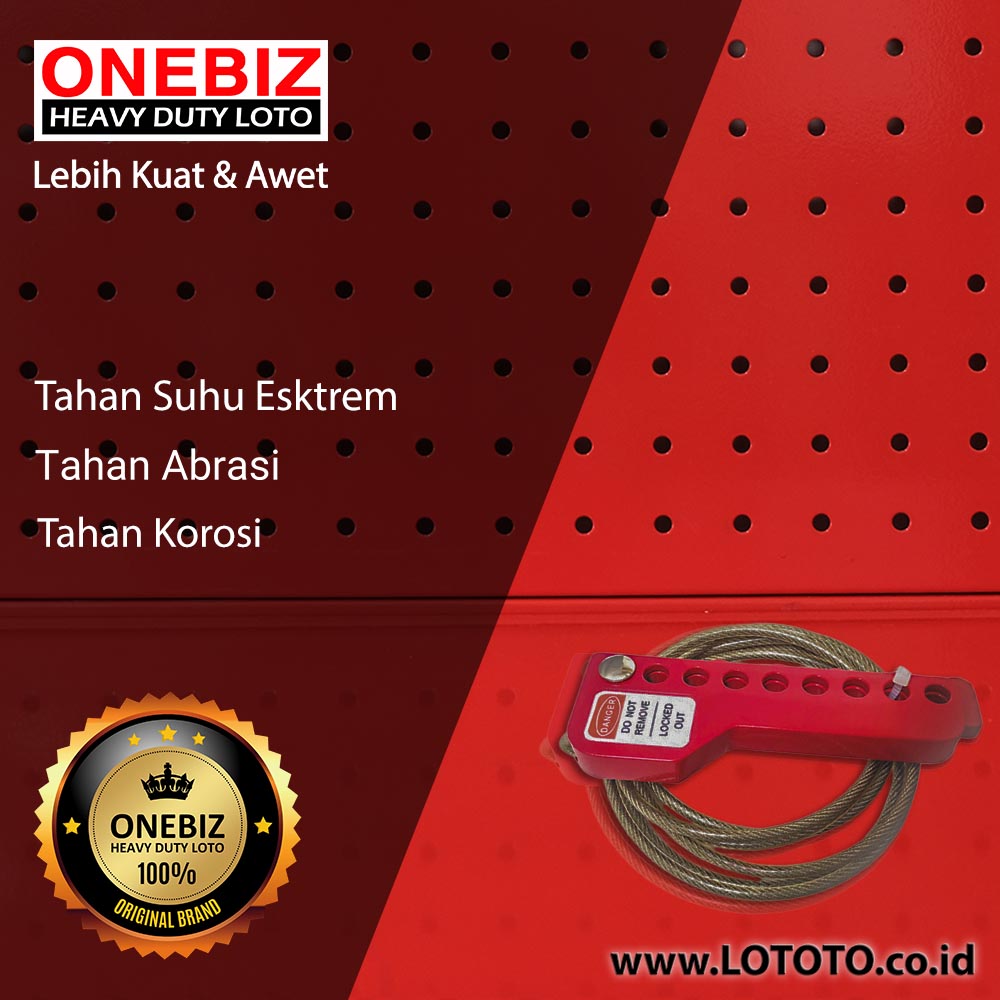 Lototo.co.id adalah Distributor resmi ONEBIZ Cable Lockout OB 14-BDAL61-2 Aluminum Material with Red Paint Spraying Stainless Steel Cable Dia. 4mm Length 1.5m di Indonesia. ONEBIZ sendiri merupakan perusahaan nasional yang fokus mengembangkan produk Lockout Tagout.