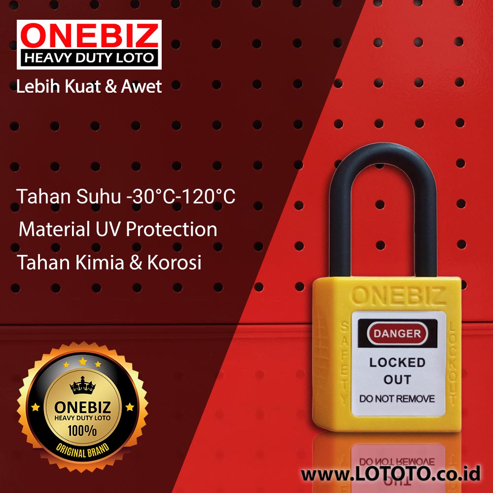 Lototo.co.id adalah Distributor resmi ONEBIZ Compact Safety Electrical Padlock Yellow OB 14-BDG12U Thermoplastic Safety Padlock di Indonesia. ONEBIZ sendiri merupakan perusahaan nasional yang fokus mengembangkan produk Lockout Tagout.