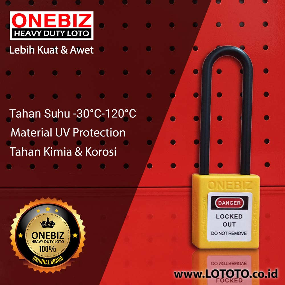 Lototo.co.id adalah Distributor resmi ONEBIZ Long Nylon Shackle Safety Padlock Yellow OB 14-BDG32 Thermoplastic Safety Padlock di Indonesia. ONEBIZ sendiri merupakan perusahaan nasional yang fokus mengembangkan produk Lockout Tagout.